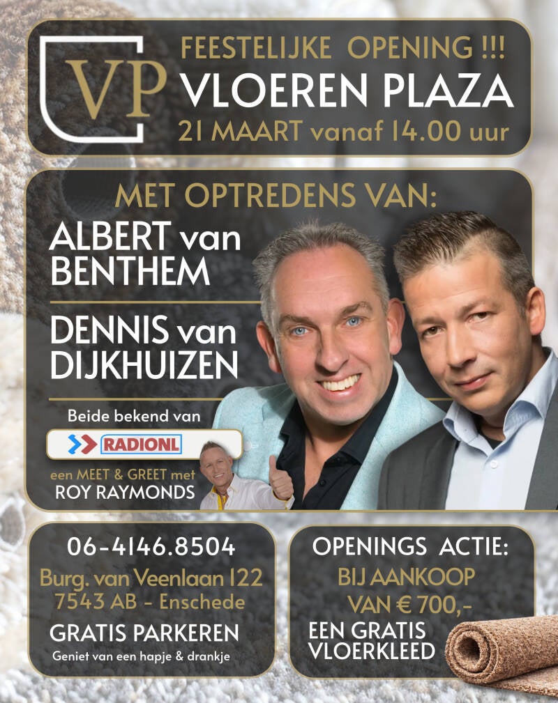 Maak je klaar voor iets nieuws en opwindends! VP VloerenPlaza opent binnenkort haar deuren en we nodigen je uit om deel uit te maken van deze speciale gelegenheid. Ontdek de nieuwste trends in vloerbedekking en profiteer van excl. openingsaanbiedingen.